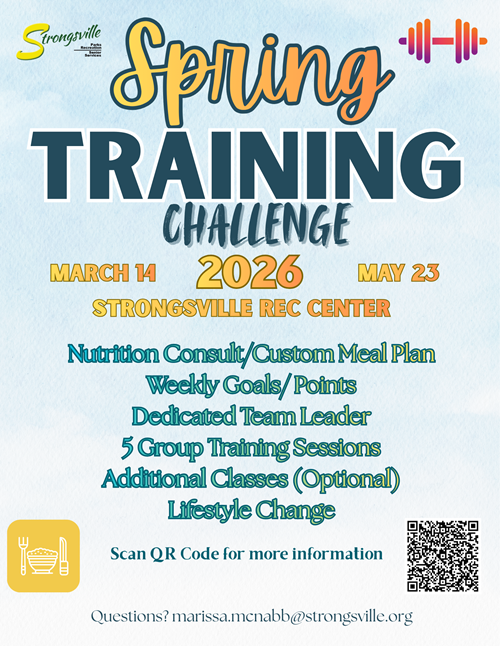 The Fitness Department offers a wide variety of fitness services and programs. For more information on the programs, contact Marissa McNabb, Fitness Supervisor, at 440-580-3260 x 5275 or marissa.mcnabb@strongsville.org.