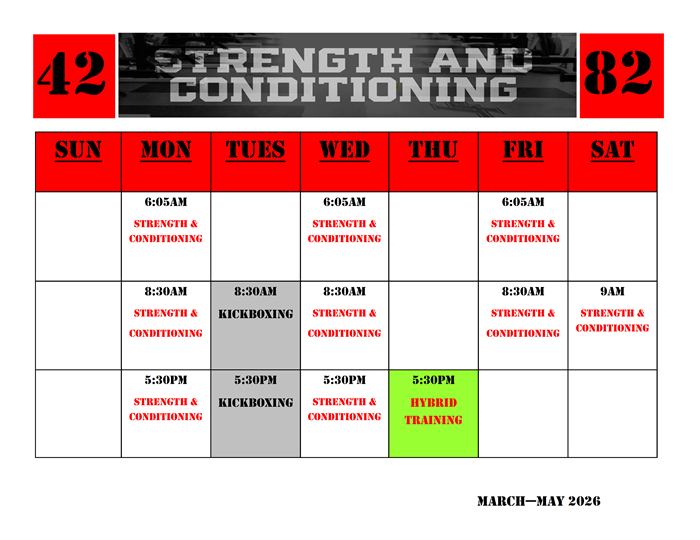 42 X 82 Strength and Conditioning Schedule